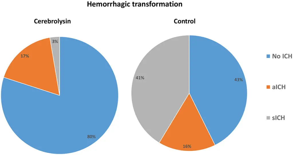 Furthermore, the incidence of hemorrhagic transformation was significantly reduced in the Cerebrolysin® group (20%) versus the control group (57.3%).